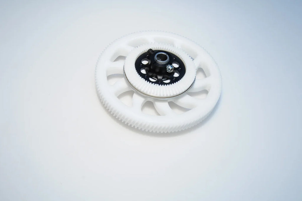 - CNC machined Delrin 117 tooth helical main gear