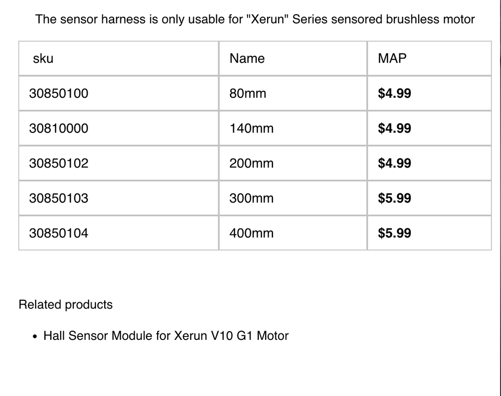 The sensor harness is only usable for "Xerun" Series sensored brushless motor